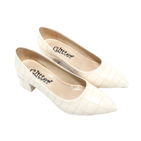 جليتر - حذاء باليه بكعب عالٍ للنساء - بيج