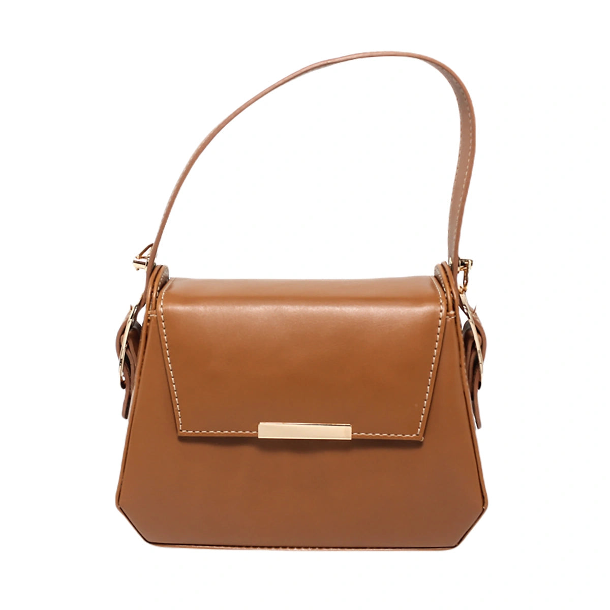 حقيبة يد جلدية ذات حجرات - مقبض بأجزاء معدنية - جيب كبير بغطاء للإغلاق