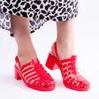 يتميز هذا الحذاء بتصميم صندل جيلي مستوحى من الطراز القديم بكعب عريض، مما يوفر الأناقة والثبات. يوفر الجزء العلوي المفتوح والمنسوج تهوية جيدة، بينما يضمن الحزام الخلفي القابل للتعديل ملاءمة محكمة. مصنوع من مادة لامعة ومرنة، سهل التنظيف ومثالي للارتداء الصيفي الكاجوال. مثالي للارتداء مع الفساتين أو التنانير أو البناطيل القصيرة لإطلالة مرحة وأنيقة.