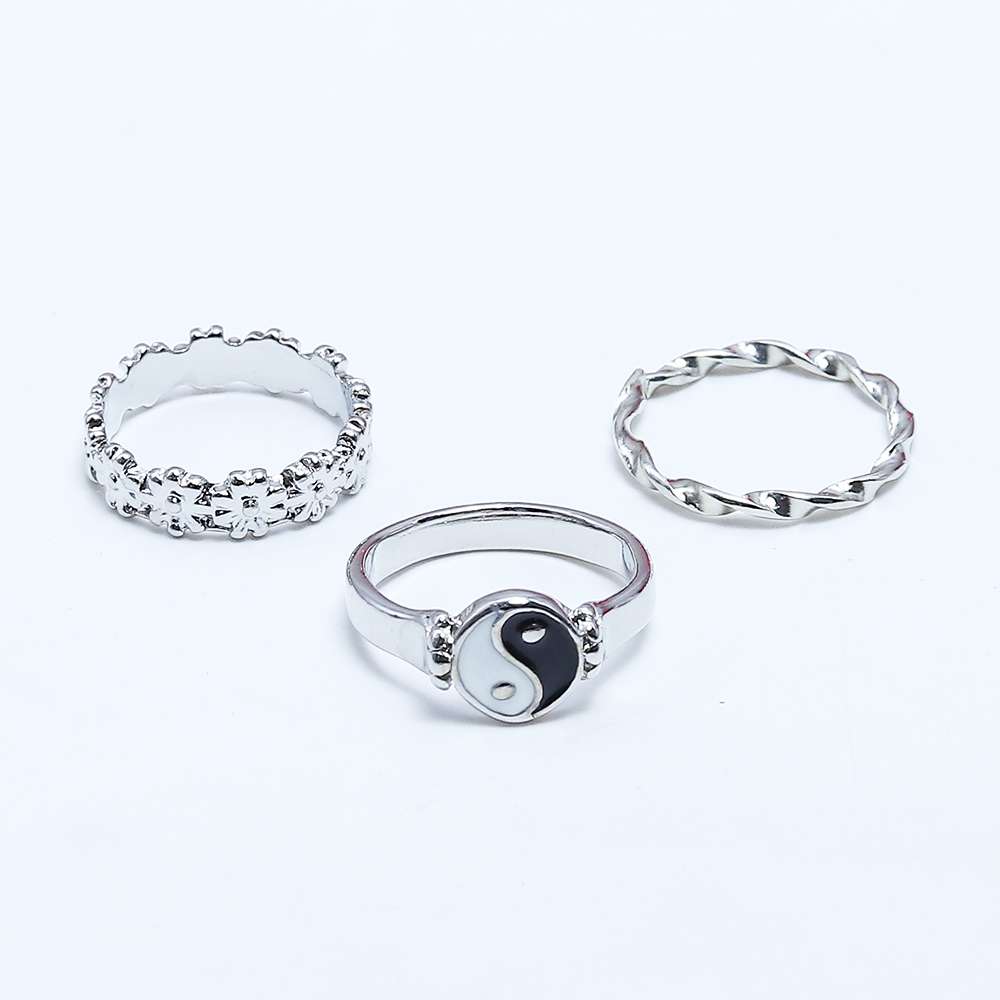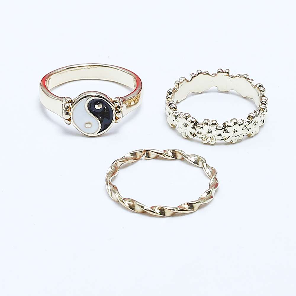 Fluffy - Black&White Earing-Set Of Rings 3 pcs Fluffy Women's Accessories-Gold