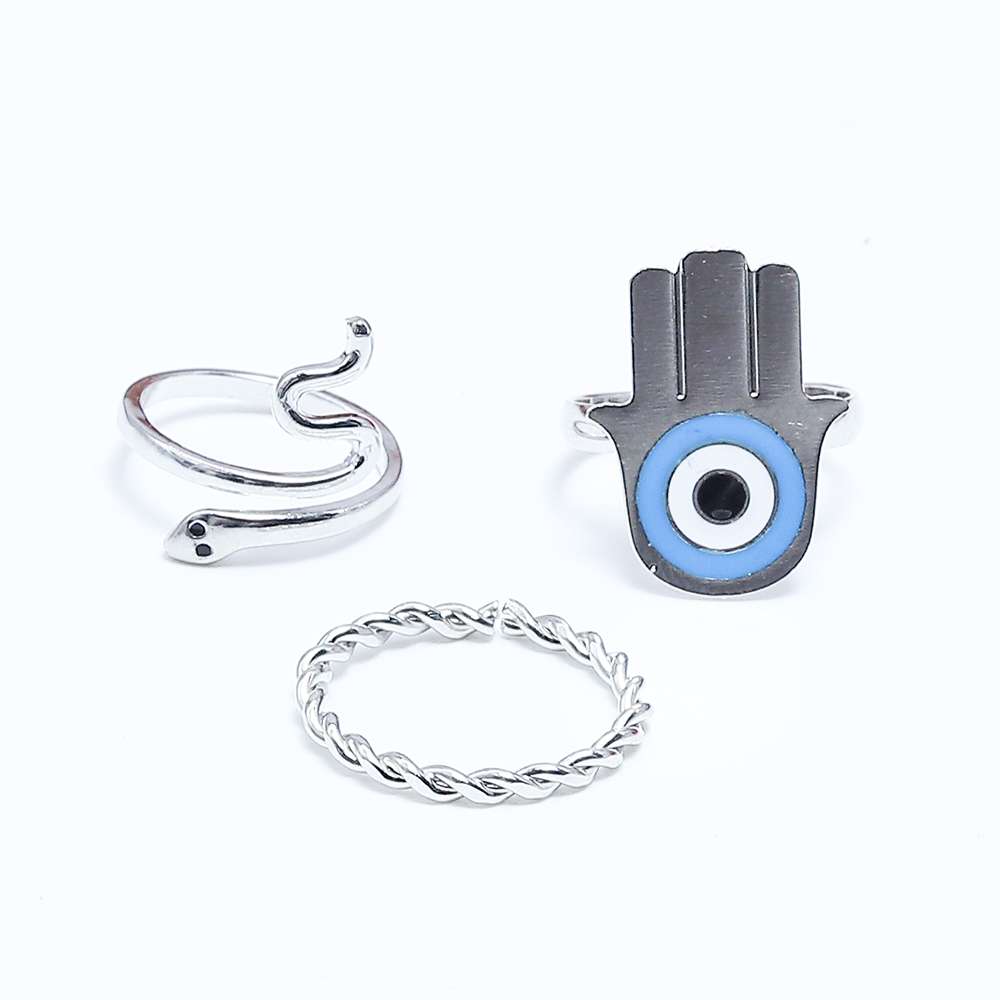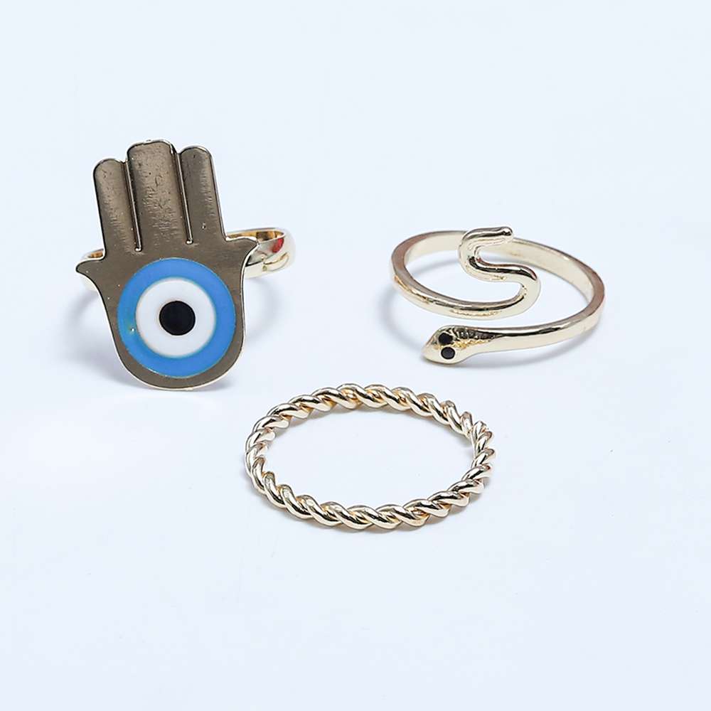 Fluffy - Hand&Snake Earing-Set Of Rings 3 pcs Fluffy Women's Accessories-Gold
