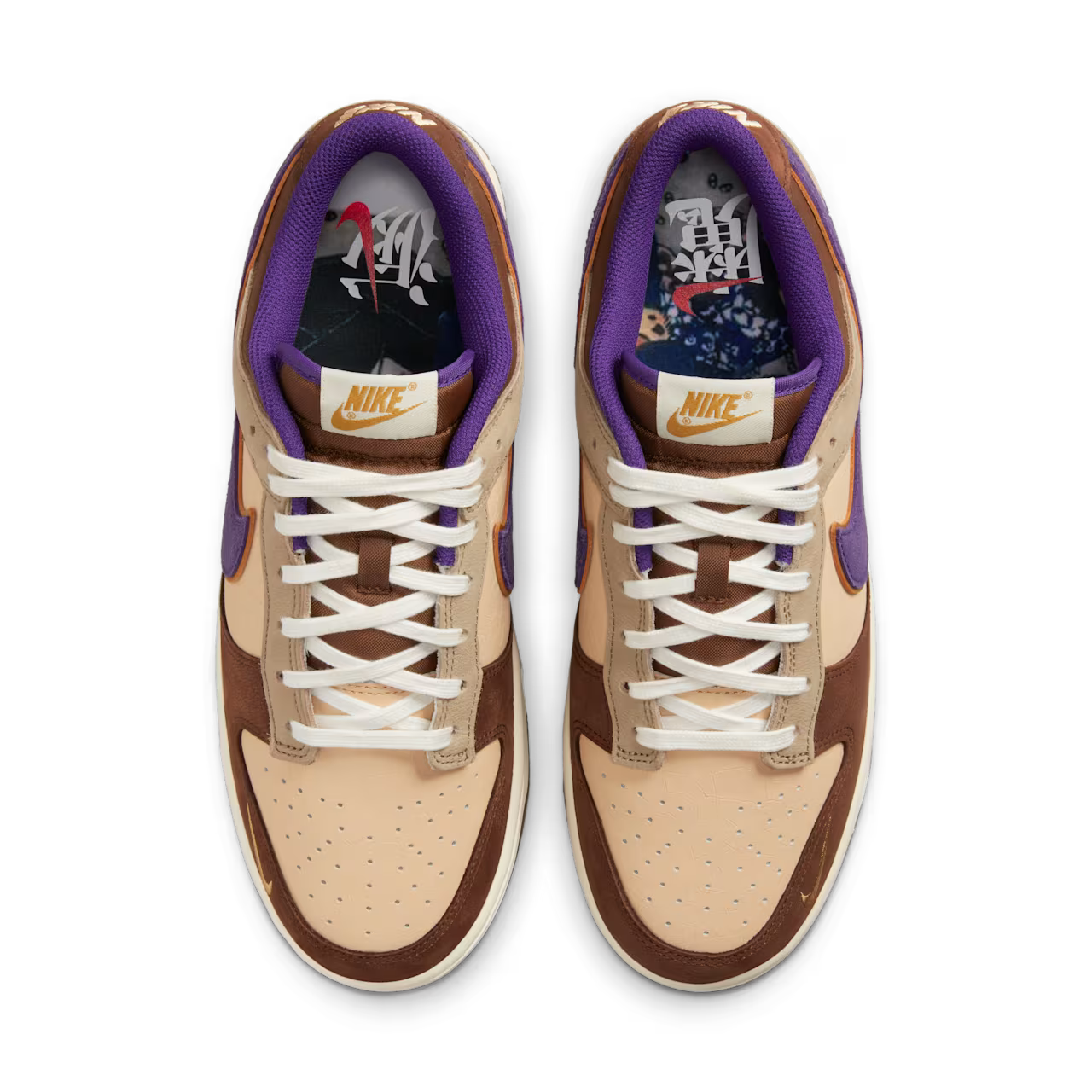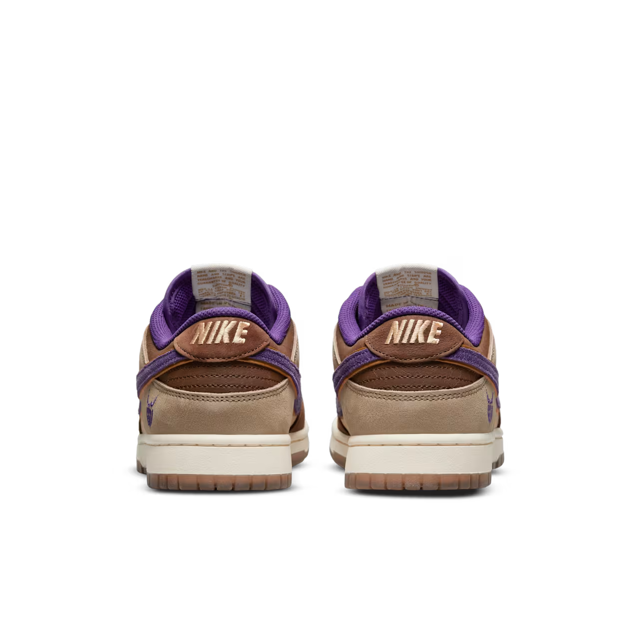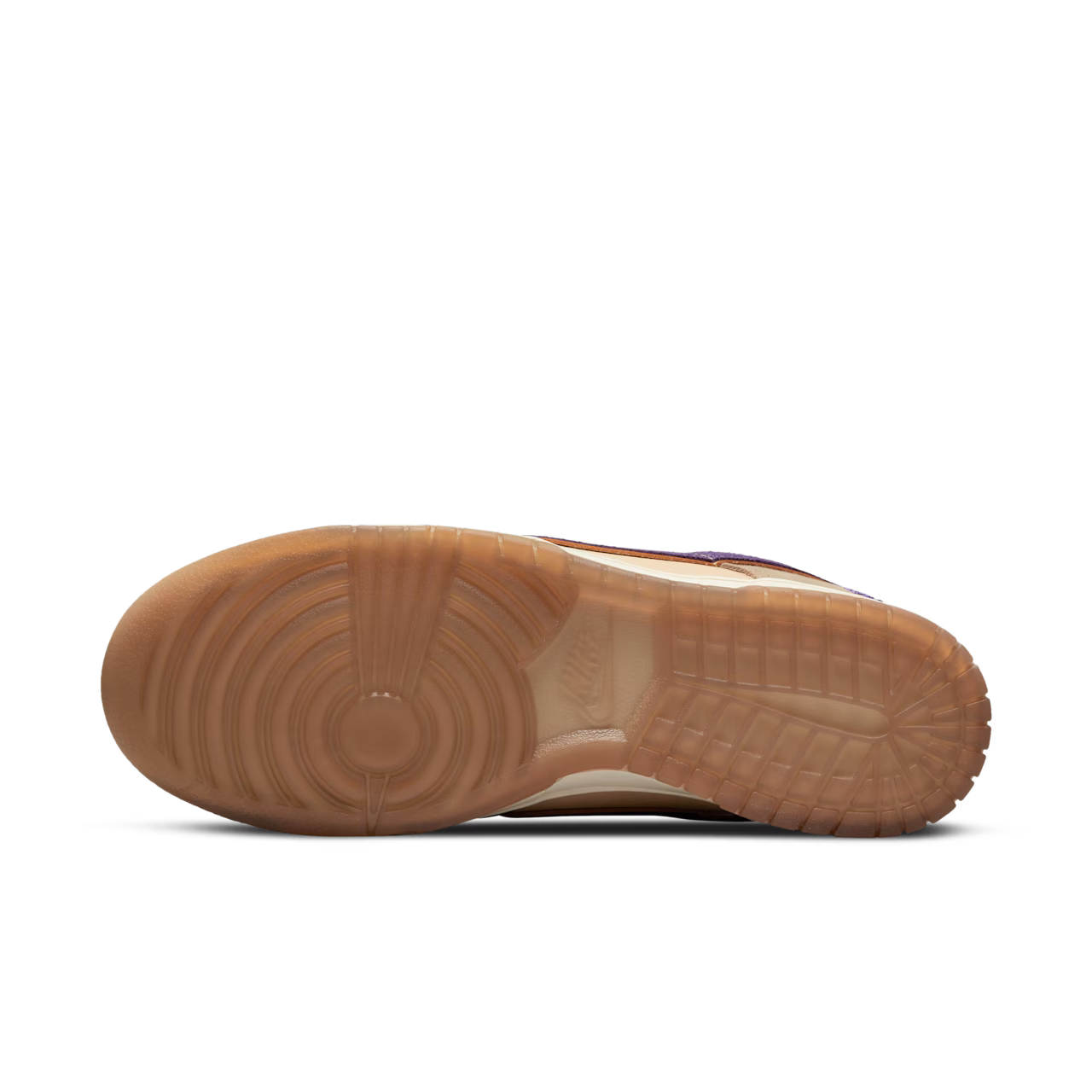 هذا حذاء رياضي منخفض الساق يتميز بجزء علوي متعدد الألواح بألوان وأقمشة متنوعة، بما في ذلك مواد ناعمة تشبه الجلد المدبوغ. يتميز بتصميم منحني بارز على الجانب، بالإضافة إلى شعار أو رسم صغير أنيق بالقرب من الكعب. منطقة أصابع القدم مثقوبة. النعل مسطح وسميك نسبيًا، وله لون مميز للنعل الخارجي. الأربطة مسطحة.