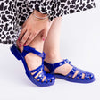 This footwear features a retro-inspired jelly sandal design with a block heel, offering both style and stability. The open, woven upper provides breathability, while the adjustable strap at the back ensures a secure fit. Made from a glossy, flexible material, it's easy to clean and ideal for casual summer wear. Perfect for pairing with dresses, skirts, or cropped pants for a playful yet chic look